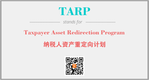 英文缩略词“TARP”经常作为“Taxpayer Asset Redirection Program”的英文缩写来使用,中文表示:“纳税人资产重定向计划”。本文将详细介绍英文缩写词TARP所代表英文单词,其对应的中文拼音、详细解释以及在英语中的流行度。此外,还有关于缩略词TARP的分类、应用领域及相关应用示例等。