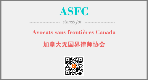 上述内容是“Avocats sans frontières Canada”作为“ASFC”的缩写,解释为“加拿大无国界律师协会”时的信息,以及英文缩略词ASFC所代表的英文单词,其对应的中文拼音、详细解释以及在英文中的流行度和相关分类、应用领域及应用示例等。