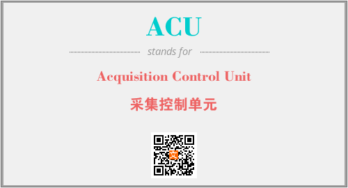 英文缩略词“ACU”经常作为“Acquisition Control Unit”的英文缩写来使用,中文表示:“采集控制单元”。本文将详细介绍英文缩写词ACU所代表英文单词,其对应的中文拼音、详细解释以及在英语中的流行度。此外,还有关于缩略词ACU的分类、应用领域及相关应用示例等。