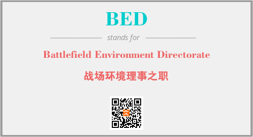 以上为Battlefield Environment Directorate英文缩略词BED的中文解释,以及该英文缩写在英语的流行度、分类和应用领域方面的信息。