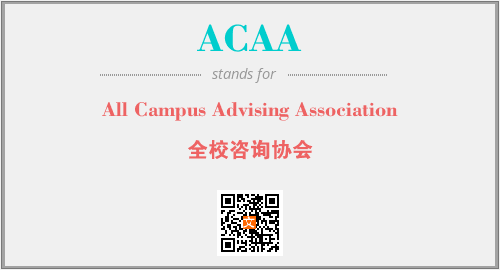 英文缩略词“ACAA”经常作为“All Campus Advising Association”的英文缩写来使用,中文表示:“全校咨询协会”。本文将详细介绍英文缩写词ACAA所代表英文单词,其对应的中文拼音、详细解释以及在英语中的流行度。此外,还有关于缩略词ACAA的分类、应用领域及相关应用示例等。