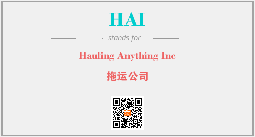 英文缩略词“HAI”经常作为“Hauling Anything Inc”的英文缩写来使用,中文表示:“拖运公司”。本文将详细介绍英文缩写词HAI所代表英文单词,其对应的中文拼音、详细解释以及在英语中的流行度。此外,还有关于缩略词HAI的分类、应用领域及相关应用示例等。