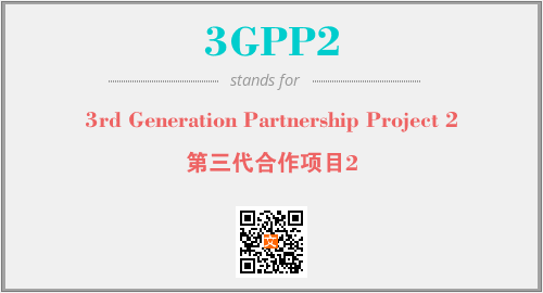 英文缩略词“3GPP2”经常作为“3rd Generation Partnership Project 2”的英文缩写来使用,中文表示:“第三代合作项目2”。本文将详细介绍英文缩写词3GPP2所代表英文单词,其对应的中文拼音、详细解释以及在英语中的流行度。此外,还有关于缩略词3GPP2的分类、应用领域及相关应用示例等。