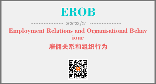 上述内容是“Employment Relations and Organisational Behaviour”作为“EROB”的缩写,解释为“雇佣关系和组织行为”时的信息,以及英文缩略词EROB所代表的英文单词,其对应的中文拼音、详细解释以及在英文中的流行度和相关分类、应用领域及应用示例等。