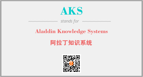上述内容是“Aladdin Knowledge Systems”作为“AKS”的缩写,解释为“阿拉丁知识系统”时的信息,以及英文缩略词AKS所代表的英文单词,其对应的中文拼音、详细解释以及在英文中的流行度和相关分类、应用领域及应用示例等。