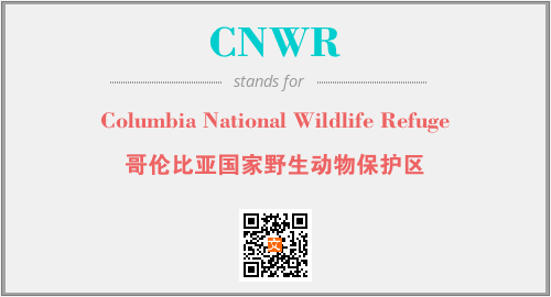 上述内容是“Columbia National Wildlife Refuge”作为“CNWR”的缩写,解释为“哥伦比亚国家野生动物保护区”时的信息,以及英文缩略词CNWR所代表的英文单词,其对应的中文拼音、详细解释以及在英文中的流行度和相关分类、应用领域及应用示例等。