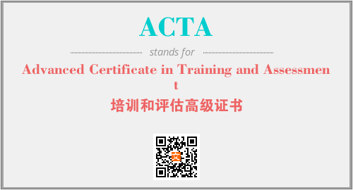 以上为Advanced Certificate in Training and Assessment英文缩略词ACTA的中文解释,以及该英文缩写在英语的流行度、分类和应用领域方面的信息。