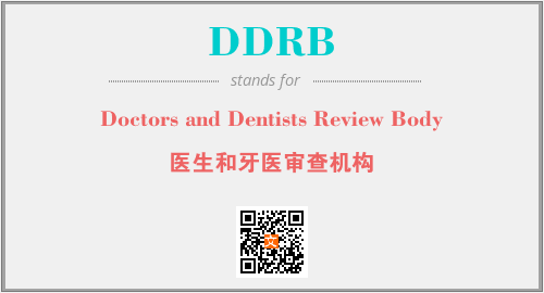 上述内容是“Doctors and Dentists Review Body”作为“DDRB”的缩写,解释为“医生和牙医审查机构”时的信息,以及英文缩略词DDRB所代表的英文单词,其对应的中文拼音、详细解释以及在英文中的流行度和相关分类、应用领域及应用示例等。