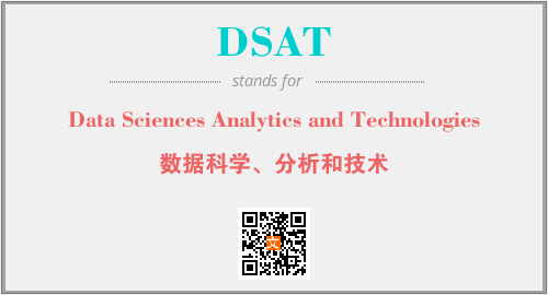 上述内容是“Data Sciences Analytics and Technologies”作为“DSAT”的缩写,解释为“数据科学、分析和技术”时的信息,以及英文缩略词DSAT所代表的英文单词,其对应的中文拼音、详细解释以及在英文中的流行度和相关分类、应用领域及应用示例等。