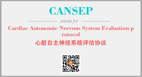 上述内容是“Cardiac Autonomic Nervous System Evaluation protocol”作为“CANSEP”的缩写,解释为“心脏自主神经系统评估协议”时的信息,以及英文缩略词CANSEP所代表的英文单词,其对应的中文拼音、详细解释以及在英文中的流行度和相关分类、应用领域及应用示例等。