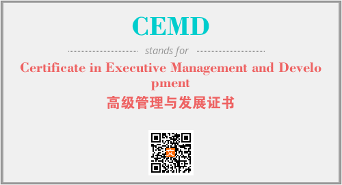 上述内容是“Certificate in Executive Management and Development”作为“CEMD”的缩写,解释为“高级管理与发展证书”时的信息,以及英文缩略词CEMD所代表的英文单词,其对应的中文拼音、详细解释以及在英文中的流行度和相关分类、应用领域及应用示例等。