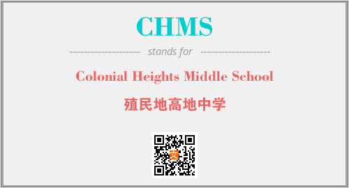 英文缩略词“CHMS”经常作为“Colonial Heights Middle School”的英文缩写来使用,中文表示:“殖民地高地中学”。本文将详细介绍英文缩写词CHMS所代表英文单词,其对应的中文拼音、详细解释以及在英语中的流行度。此外,还有关于缩略词CHMS的分类、应用领域及相关应用示例等。