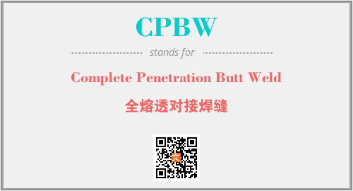 英文缩略词“CPBW”经常作为“Complete Penetration Butt Weld”的英文缩写来使用,中文表示:“全熔透对接焊缝”。本文将详细介绍英文缩写词CPBW所代表英文单词,其对应的中文拼音、详细解释以及在英语中的流行度。此外,还有关于缩略词CPBW的分类、应用领域及相关应用示例等。