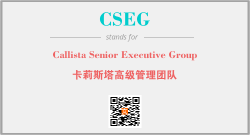 上述内容是“Callista Senior Executive Group”作为“CSEG”的缩写,解释为“卡莉斯塔高级管理团队”时的信息,以及英文缩略词CSEG所代表的英文单词,其对应的中文拼音、详细解释以及在英文中的流行度和相关分类、应用领域及应用示例等。