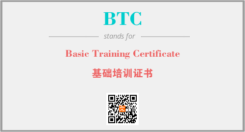 英文缩略词“BTC”经常作为“Basic Training Certificate”的英文缩写来使用,中文表示:“基础培训证书”。本文将详细介绍英文缩写词BTC所代表英文单词,其对应的中文拼音、详细解释以及在英语中的流行度。此外,还有关于缩略词BTC的分类、应用领域及相关应用示例等。