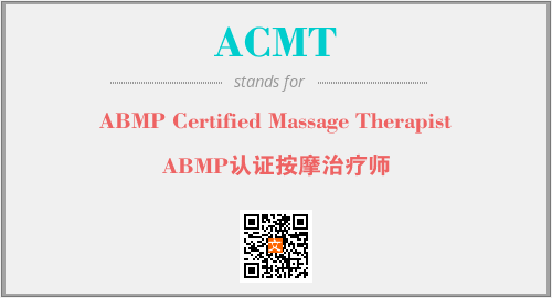 英文缩略词“ACMT”经常作为“ABMP Certified Massage Therapist”的英文缩写来使用,中文表示:“ABMP认证按摩治疗师”。本文将详细介绍英文缩写词ACMT所代表英文单词,其对应的中文拼音、详细解释以及在英语中的流行度。此外,还有关于缩略词ACMT的分类、应用领域及相关应用示例等。