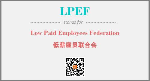 上述内容是“Low Paid Employees Federation”作为“LPEF”的缩写,解释为“低薪雇员联合会”时的信息,以及英文缩略词LPEF所代表的英文单词,其对应的中文拼音、详细解释以及在英文中的流行度和相关分类、应用领域及应用示例等。