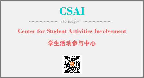 上述内容是“Center for Student Activities Involvement”作为“CSAI”的缩写,解释为“学生活动参与中心”时的信息,以及英文缩略词CSAI所代表的英文单词,其对应的中文拼音、详细解释以及在英文中的流行度和相关分类、应用领域及应用示例等。
