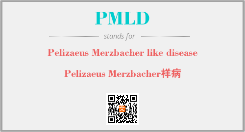 上述内容是“Pelizaeus Merzbacher like disease”作为“PMLD”的缩写,解释为“Pelizaeus Merzbacher样病”时的信息,以及英文缩略词PMLD所代表的英文单词,其对应的中文拼音、详细解释以及在英文中的流行度和相关分类、应用领域及应用示例等。
