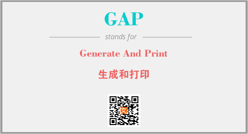 上述内容是“Generate And Print”作为“GAP”的缩写,解释为“生成和打印”时的信息,以及英文缩略词GAP所代表的英文单词,其对应的中文拼音、详细解释以及在英文中的流行度和相关分类、应用领域及应用示例等。