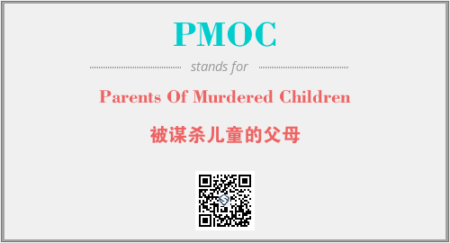 上述内容是“Parents Of Murdered Children”作为“PMOC”的缩写,解释为“被谋杀儿童的父母”时的信息,以及英文缩略词PMOC所代表的英文单词,其对应的中文拼音、详细解释以及在英文中的流行度和相关分类、应用领域及应用示例等。