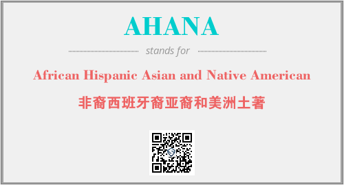 上述内容是“African Hispanic Asian and Native American”作为“AHANA”的缩写,解释为“非裔西班牙裔亚裔和美洲土著”时的信息,以及英文缩略词AHANA所代表的英文单词,其对应的中文拼音、详细解释以及在英文中的流行度和相关分类、应用领域及应用示例等。