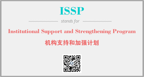 上述内容是“Institutional Support and Strengthening Program”作为“ISSP”的缩写,解释为“机构支持和加强计划”时的信息,以及英文缩略词ISSP所代表的英文单词,其对应的中文拼音、详细解释以及在英文中的流行度和相关分类、应用领域及应用示例等。