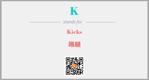 上述内容是“Kicks”作为“K”的缩写,解释为“踢腿”时的信息,以及英文缩略词K所代表的英文单词,其对应的中文拼音、详细解释以及在英文中的流行度和相关分类、应用领域及应用示例等。