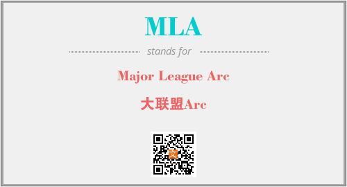 上述内容是“Major League Arc”作为“MLA”的缩写,解释为“大联盟Arc”时的信息,以及英文缩略词MLA所代表的英文单词,其对应的中文拼音、详细解释以及在英文中的流行度和相关分类、应用领域及应用示例等。