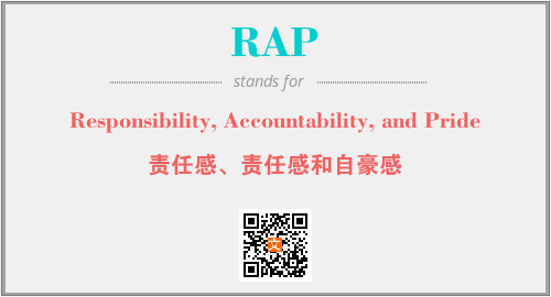 以上为Responsibility, Accountability, and Pride英文缩略词RAP的中文解释,以及该英文缩写在英语的流行度、分类和应用领域方面的信息。
