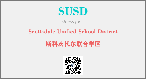 上述内容是“Scottsdale Unified School District”作为“SUSD”的缩写,解释为“斯科茨代尔联合学区”时的信息,以及英文缩略词SUSD所代表的英文单词,其对应的中文拼音、详细解释以及在英文中的流行度和相关分类、应用领域及应用示例等。