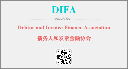 以上为Debtor and Invoice Finance Association英文缩略词DIFA的中文解释,以及该英文缩写在英语的流行度、分类和应用领域方面的信息。