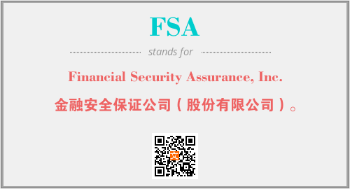 上述内容是“Financial Security Assurance, Inc.”作为“FSA”的缩写,解释为“金融安全保证公司(股份有限公司)。”时的信息,以及英文缩略词FSA所代表的英文单词,其对应的中文拼音、详细解释以及在英文中的流行度和相关分类、应用领域及应用示例等。