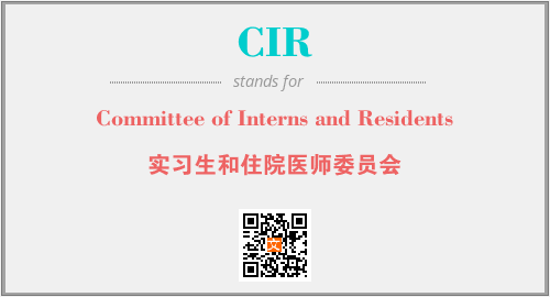 上述内容是“Committee of Interns and Residents”作为“CIR”的缩写,解释为“实习生和住院医师委员会”时的信息,以及英文缩略词CIR所代表的英文单词,其对应的中文拼音、详细解释以及在英文中的流行度和相关分类、应用领域及应用示例等。