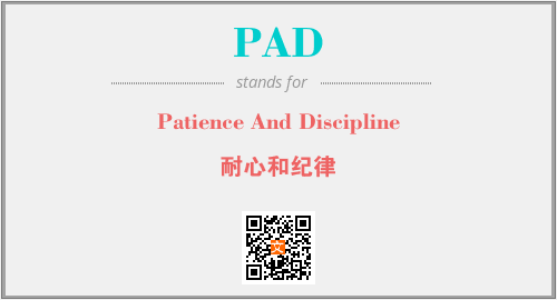 上述内容是“Patience And Discipline”作为“PAD”的缩写,解释为“耐心和纪律”时的信息,以及英文缩略词PAD所代表的英文单词,其对应的中文拼音、详细解释以及在英文中的流行度和相关分类、应用领域及应用示例等。