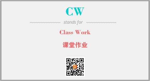 英文缩略词“CW”经常作为“Class Work”的英文缩写来使用,中文表示:“课堂作业”。本文将详细介绍英文缩写词CW所代表英文单词,其对应的中文拼音、详细解释以及在英语中的流行度。此外,还有关于缩略词CW的分类、应用领域及相关应用示例等。