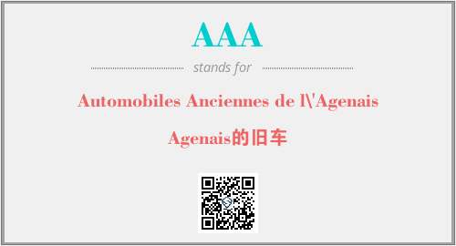 上述内容是“Automobiles Anciennes de l\'Agenais”作为“AAA”的缩写,解释为“Agenais的旧车”时的信息,以及英文缩略词AAA所代表的英文单词,其对应的中文拼音、详细解释以及在英文中的流行度和相关分类、应用领域及应用示例等。