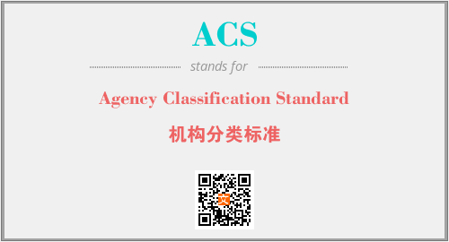英文缩略词“ACS”经常作为“Agency Classification Standard”的英文缩写来使用,中文表示:“机构分类标准”。本文将详细介绍英文缩写词ACS所代表英文单词,其对应的中文拼音、详细解释以及在英语中的流行度。此外,还有关于缩略词ACS的分类、应用领域及相关应用示例等。