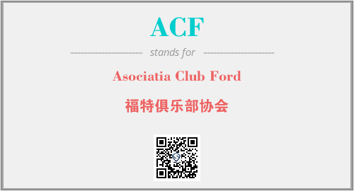 英文缩略词“ACF”经常作为“Asociatia Club Ford”的英文缩写来使用,中文表示:“福特俱乐部协会”。本文将详细介绍英文缩写词ACF所代表英文单词,其对应的中文拼音、详细解释以及在英语中的流行度。此外,还有关于缩略词ACF的分类、应用领域及相关应用示例等。