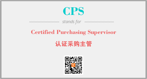 英文缩略词“CPS”经常作为“Certified Purchasing Supervisor”的英文缩写来使用,中文表示:“认证采购主管”。本文将详细介绍英文缩写词CPS所代表英文单词,其对应的中文拼音、详细解释以及在英语中的流行度。此外,还有关于缩略词CPS的分类、应用领域及相关应用示例等。