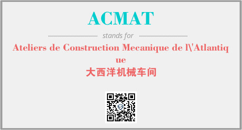 以上为Ateliers de Construction Mecanique de l\'Atlantique英文缩略词ACMAT的中文解释,以及该英文缩写在英语的流行度、分类和应用领域方面的信息。