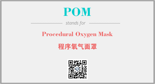 英文缩略词“POM”经常作为“Procedural Oxygen Mask”的英文缩写来使用,中文表示:“程序氧气面罩”。本文将详细介绍英文缩写词POM所代表英文单词,其对应的中文拼音、详细解释以及在英语中的流行度。此外,还有关于缩略词POM的分类、应用领域及相关应用示例等。