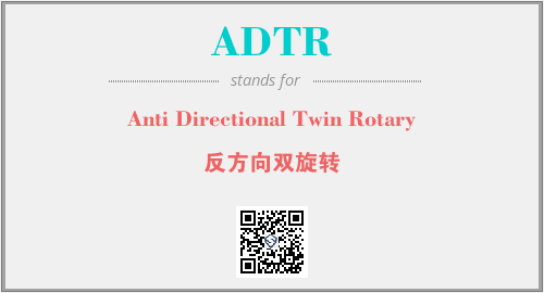 英文缩略词“ADTR”经常作为“Anti Directional Twin Rotary”的英文缩写来使用,中文表示:“反方向双旋转”。本文将详细介绍英文缩写词ADTR所代表英文单词,其对应的中文拼音、详细解释以及在英语中的流行度。此外,还有关于缩略词ADTR的分类、应用领域及相关应用示例等。