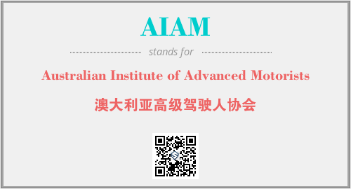 上述内容是“Australian Institute of Advanced Motorists”作为“AIAM”的缩写,解释为“澳大利亚高级驾驶人协会”时的信息,以及英文缩略词AIAM所代表的英文单词,其对应的中文拼音、详细解释以及在英文中的流行度和相关分类、应用领域及应用示例等。