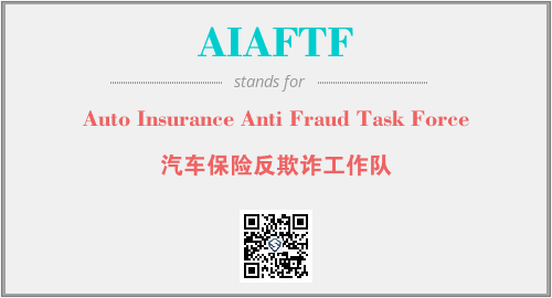 上述内容是“Auto Insurance Anti Fraud Task Force”作为“AIAFTF”的缩写,解释为“汽车保险反欺诈工作队”时的信息,以及英文缩略词AIAFTF所代表的英文单词,其对应的中文拼音、详细解释以及在英文中的流行度和相关分类、应用领域及应用示例等。