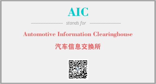 英文缩略词“AIC”经常作为“Automotive Information Clearinghouse”的英文缩写来使用,中文表示:“汽车信息交换所”。本文将详细介绍英文缩写词AIC所代表英文单词,其对应的中文拼音、详细解释以及在英语中的流行度。此外,还有关于缩略词AIC的分类、应用领域及相关应用示例等。