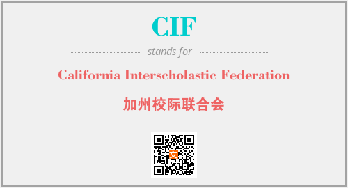 上述内容是“California Interscholastic Federation”作为“CIF”的缩写,解释为“加州校际联合会”时的信息,以及英文缩略词CIF所代表的英文单词,其对应的中文拼音、详细解释以及在英文中的流行度和相关分类、应用领域及应用示例等。