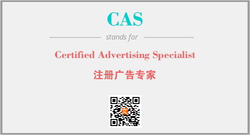 上述内容是“Certified Advertising Specialist”作为“CAS”的缩写,解释为“注册广告专家”时的信息,以及英文缩略词CAS所代表的英文单词,其对应的中文拼音、详细解释以及在英文中的流行度和相关分类、应用领域及应用示例等。