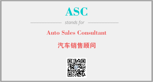 英文缩略词“ASC”经常作为“Auto Sales Consultant”的英文缩写来使用,中文表示:“汽车销售顾问”。本文将详细介绍英文缩写词ASC所代表英文单词,其对应的中文拼音、详细解释以及在英语中的流行度。此外,还有关于缩略词ASC的分类、应用领域及相关应用示例等。