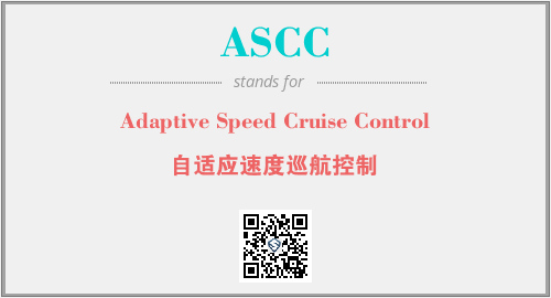 英文缩略词“ASCC”经常作为“Adaptive Speed Cruise Control”的英文缩写来使用,中文表示:“自适应速度巡航控制”。本文将详细介绍英文缩写词ASCC所代表英文单词,其对应的中文拼音、详细解释以及在英语中的流行度。此外,还有关于缩略词ASCC的分类、应用领域及相关应用示例等。